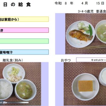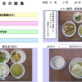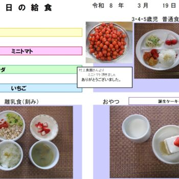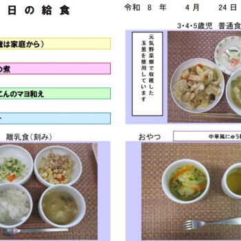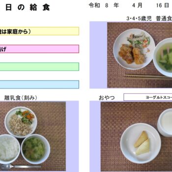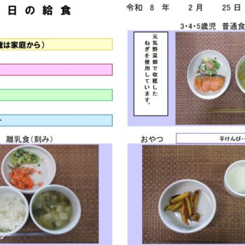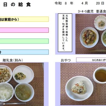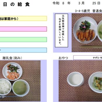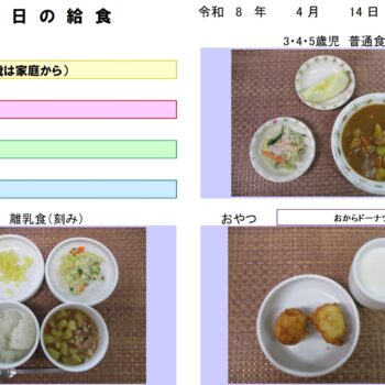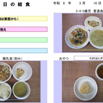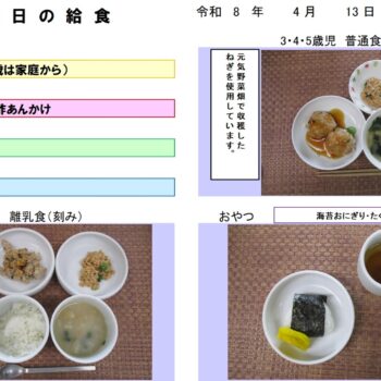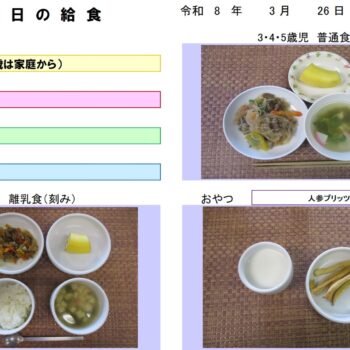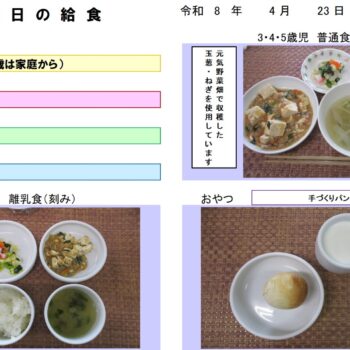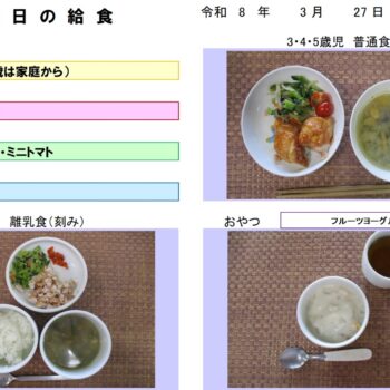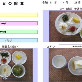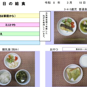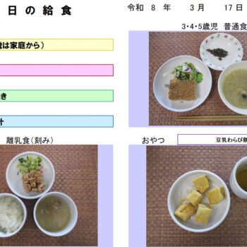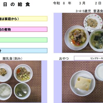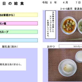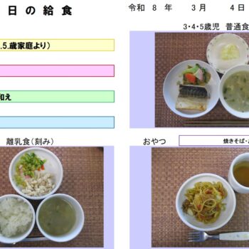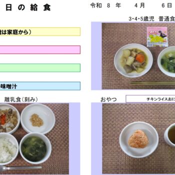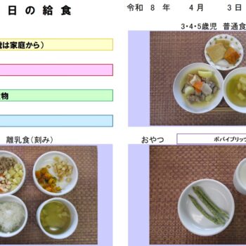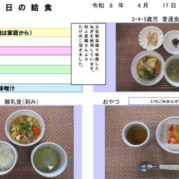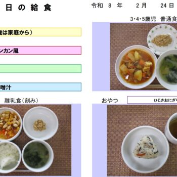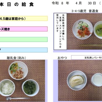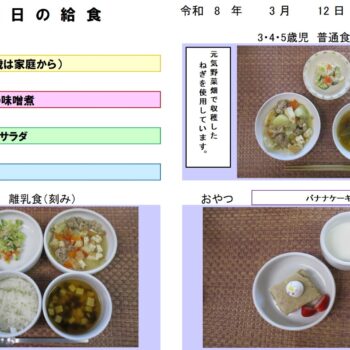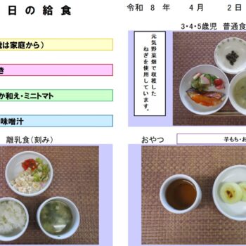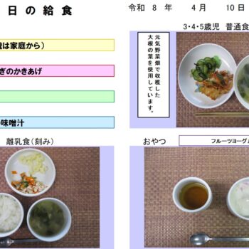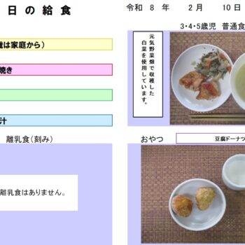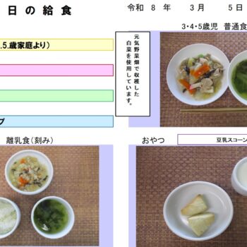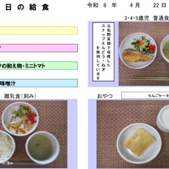 大野保育園で子供たちが食べている、日々の給食を写真でご紹介します。