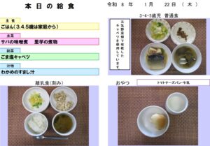 今日の給食 - 玉名市岱明町 大野保育園
