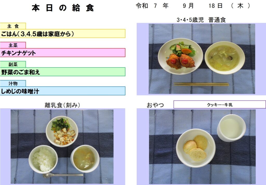 今日の給食(R7.9.18) - 玉名市岱明町 大野保育園