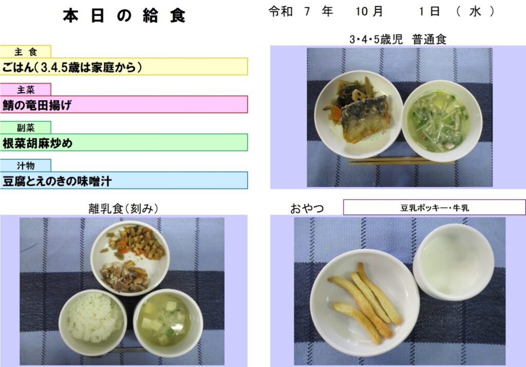 今日の給食(R7.10.1) - 玉名市岱明町 大野保育園