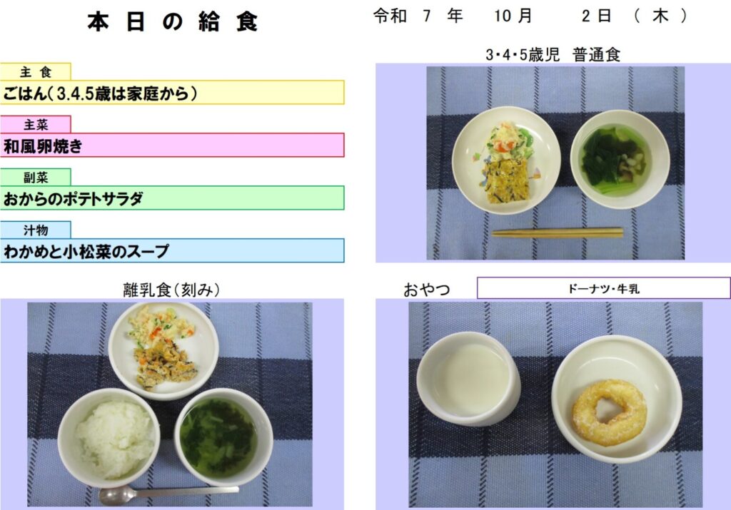 今日の給食(R7.10.2) - 玉名市岱明町 大野保育園