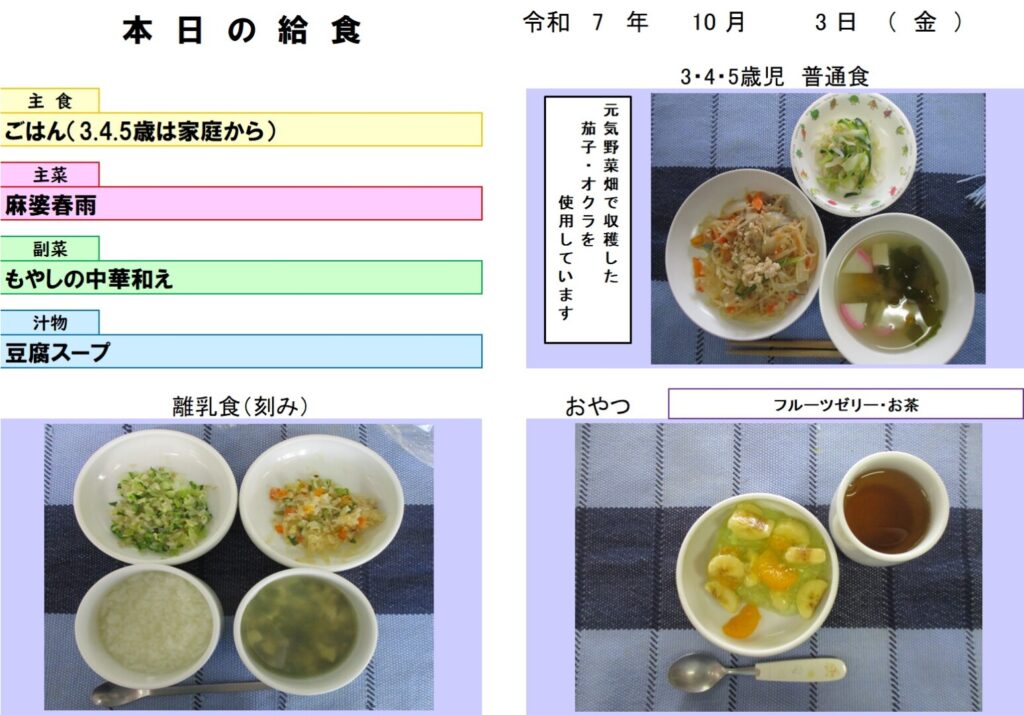 今日の給食(R7.10.3) - 玉名市岱明町 大野保育園
