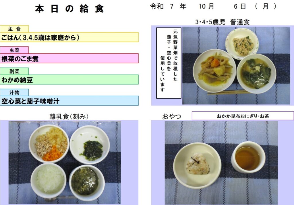 今日の給食 (R7.10.6) - 玉名市岱明町 大野保育園