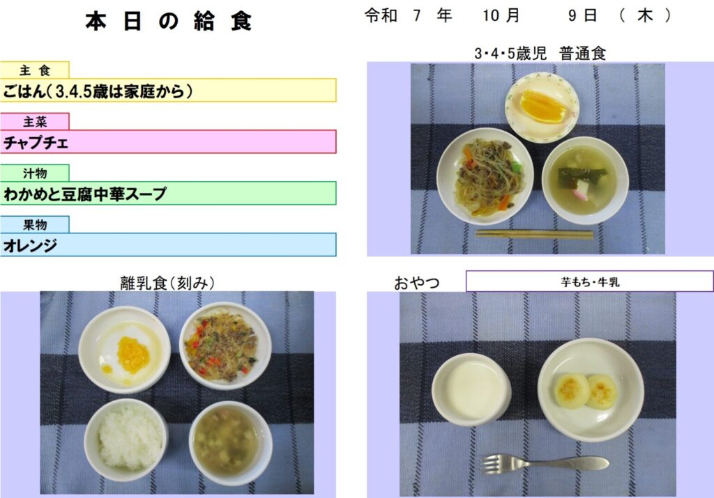 今日の給食 (R7.10.9) - 玉名市岱明町 大野保育園