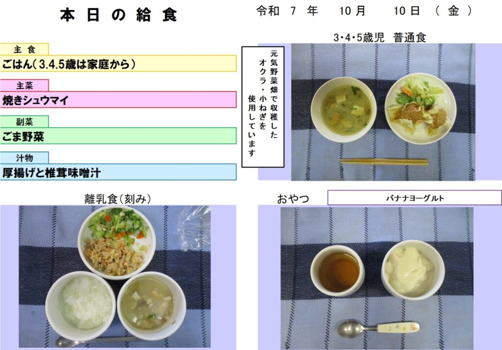 今日の給食 (R7.10.10) - 玉名市岱明町 大野保育園