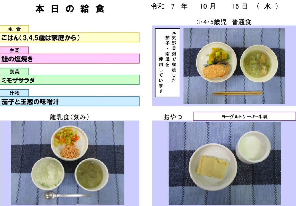 今日の給食(R7.10.15) - 玉名市岱明町 大野保育園