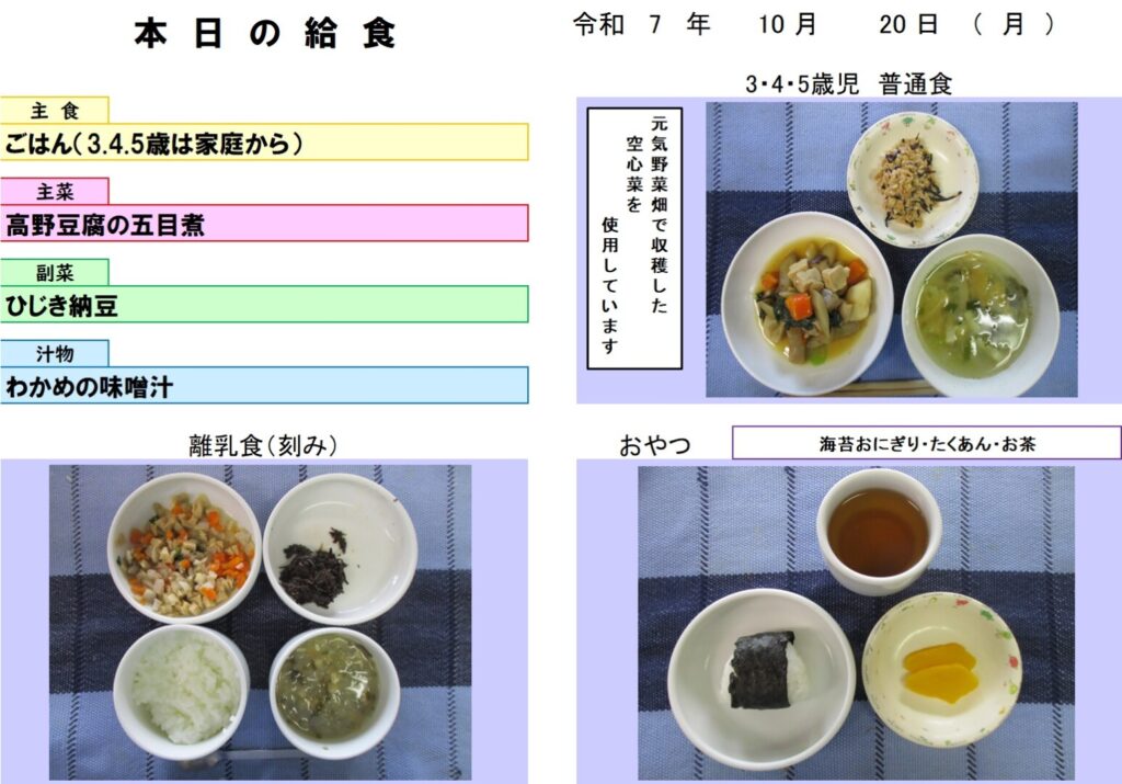 今日の給食(R7.10.20) - 玉名市岱明町 大野保育園