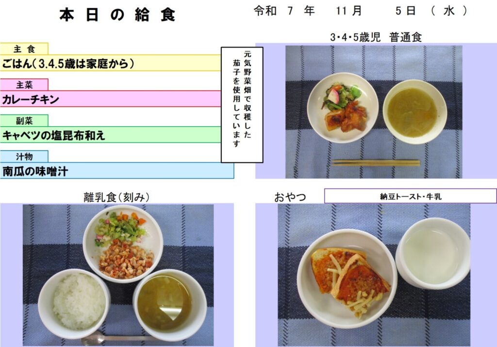 今日の給食(R7.11.5) - 玉名市岱明町 大野保育園