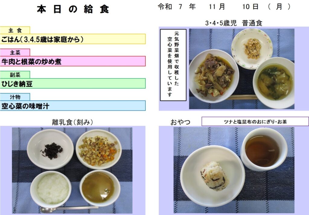 今日の給食(R7.11.10) - 玉名市岱明町 大野保育園