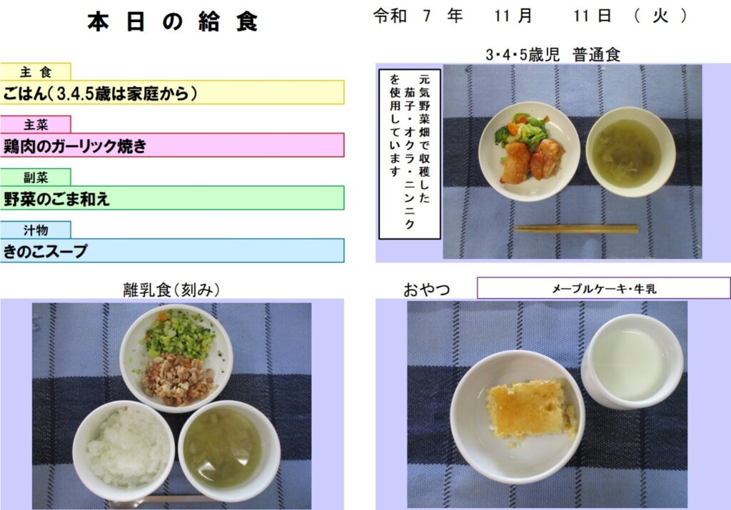 今日の給食(R7.11.11) - 玉名市岱明町 大野保育園