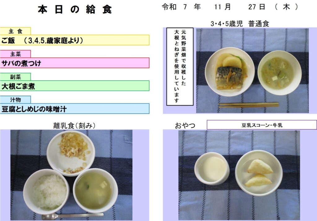 今日の給食(R7.11.27) - 玉名市岱明町 大野保育園