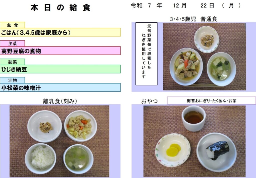 今日の給食(R7.12.22) - 玉名市岱明町 大野保育園
