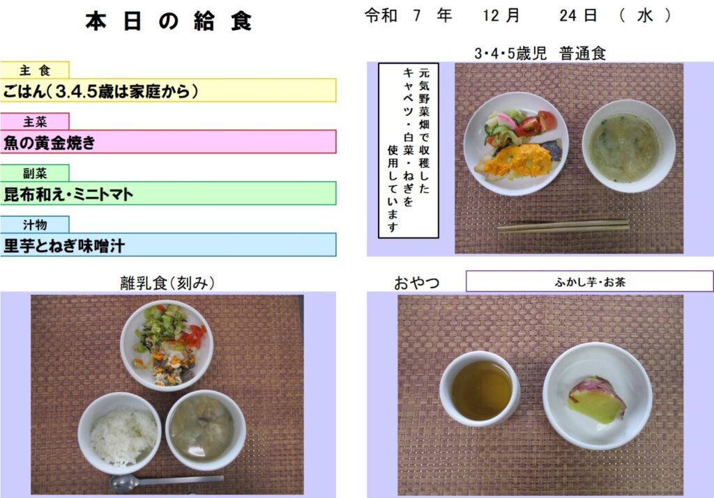 今日の給食(R7.12.24) - 玉名市岱明町 大野保育園