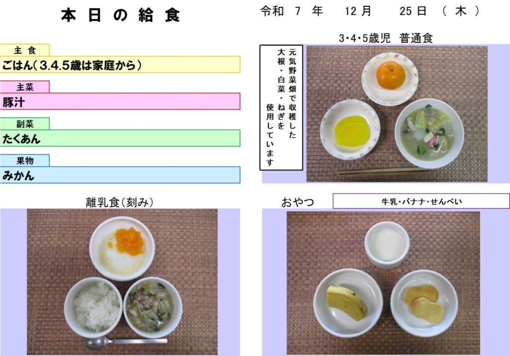 今日の給食 (R7.12.25) - 玉名市岱明町 大野保育園