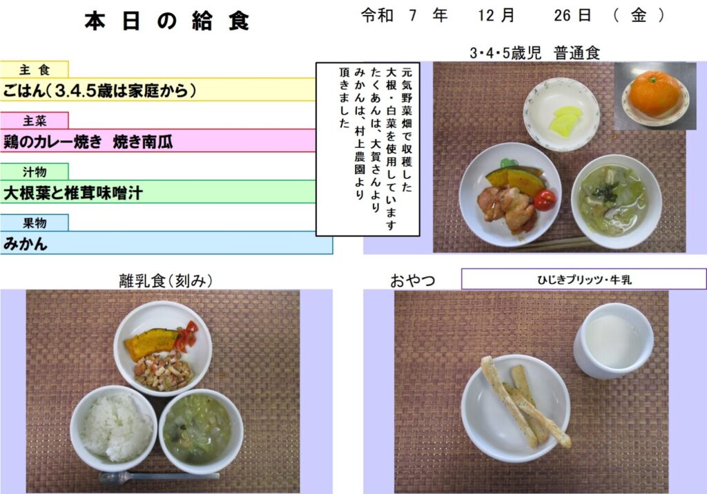 今日の給食 (R7.12.26) - 玉名市岱明町 大野保育園