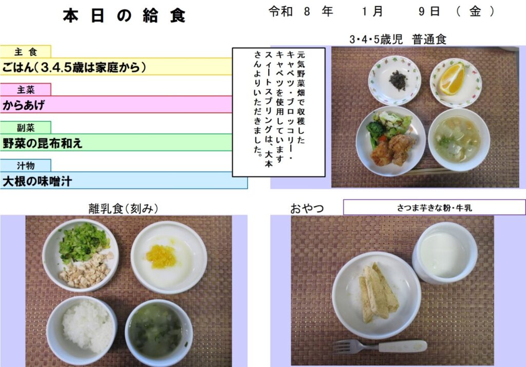 今日の給食 (R8.1.9) - 玉名市岱明町 大野保育園