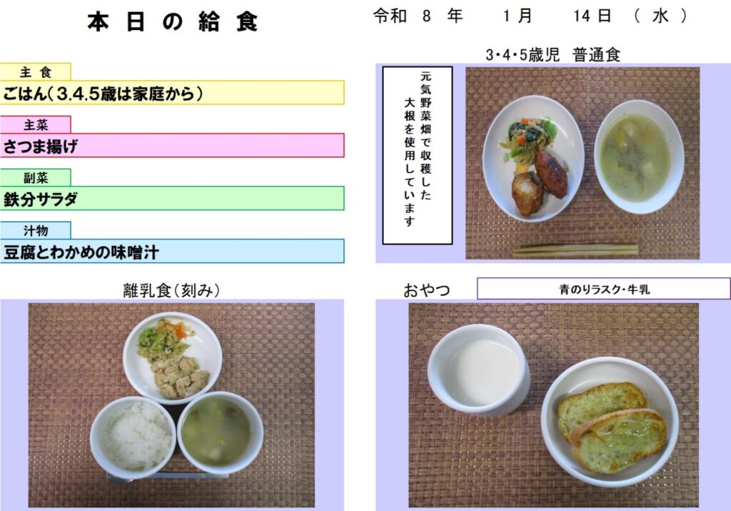 今日の給食(R8.1.14) - 玉名市岱明町 大野保育園
