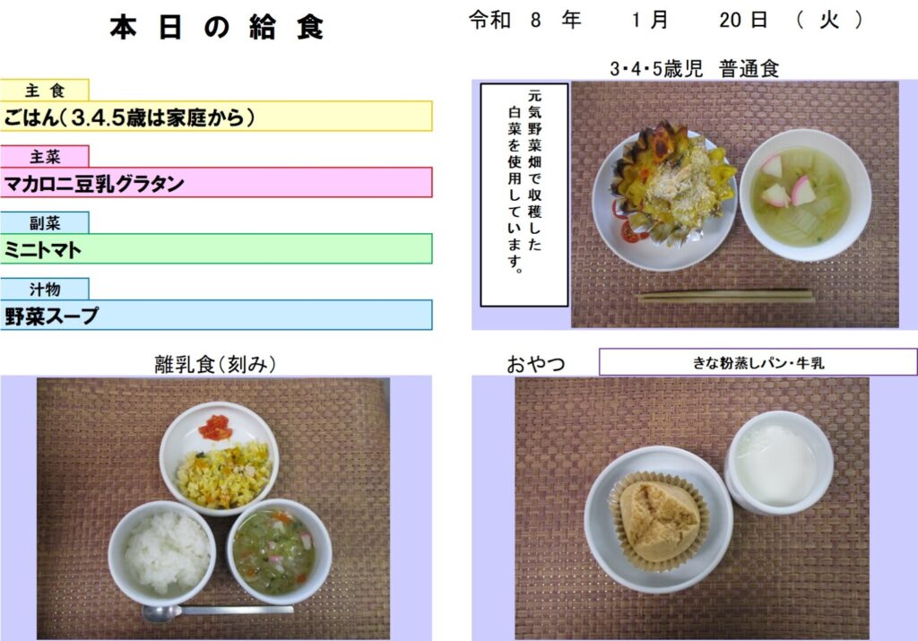 今日の給食 (R8.1.20) - 玉名市岱明町 大野保育園