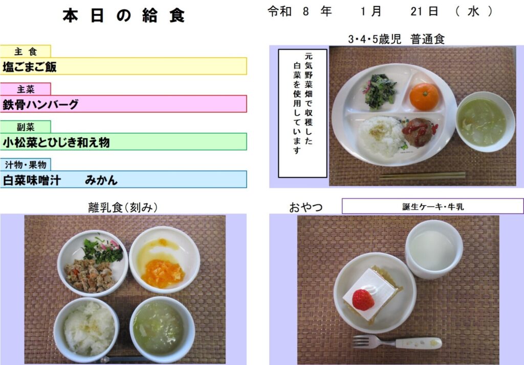 今日の給食 (R8.1.21) - 玉名市岱明町 大野保育園
