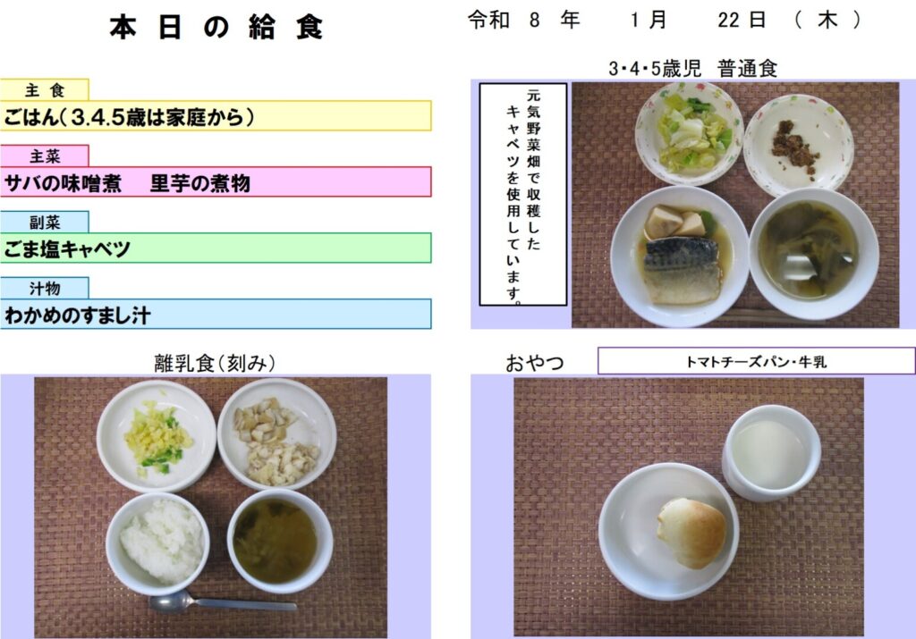 今日の給食 (R8.1.22) - 玉名市岱明町 大野保育園