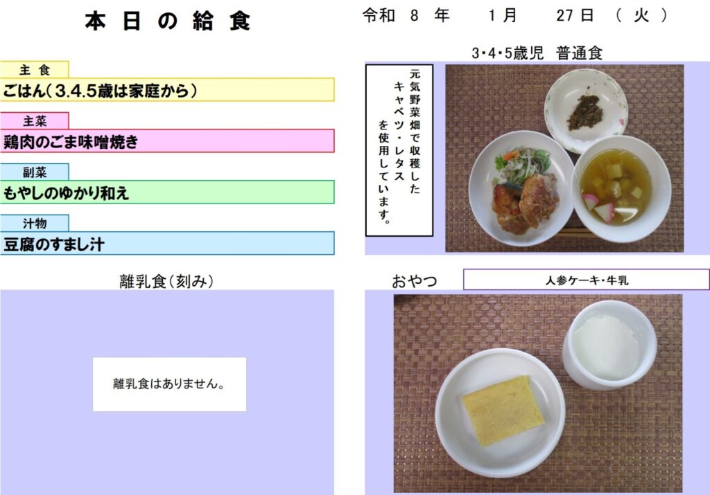 今日の給食(R8.1.27) - 玉名市岱明町 大野保育園