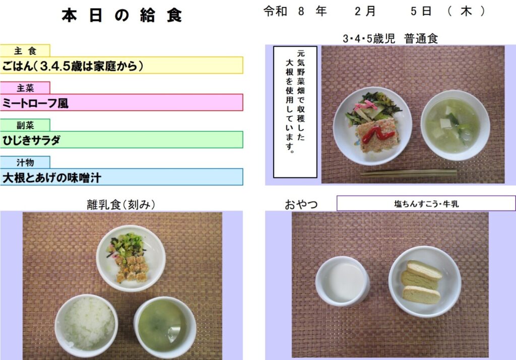今日の給食 (R8.2.5) - 玉名市岱明町 大野保育園