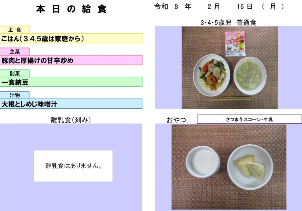 今日の給食 (R8.2.16) - 玉名市岱明町 大野保育園