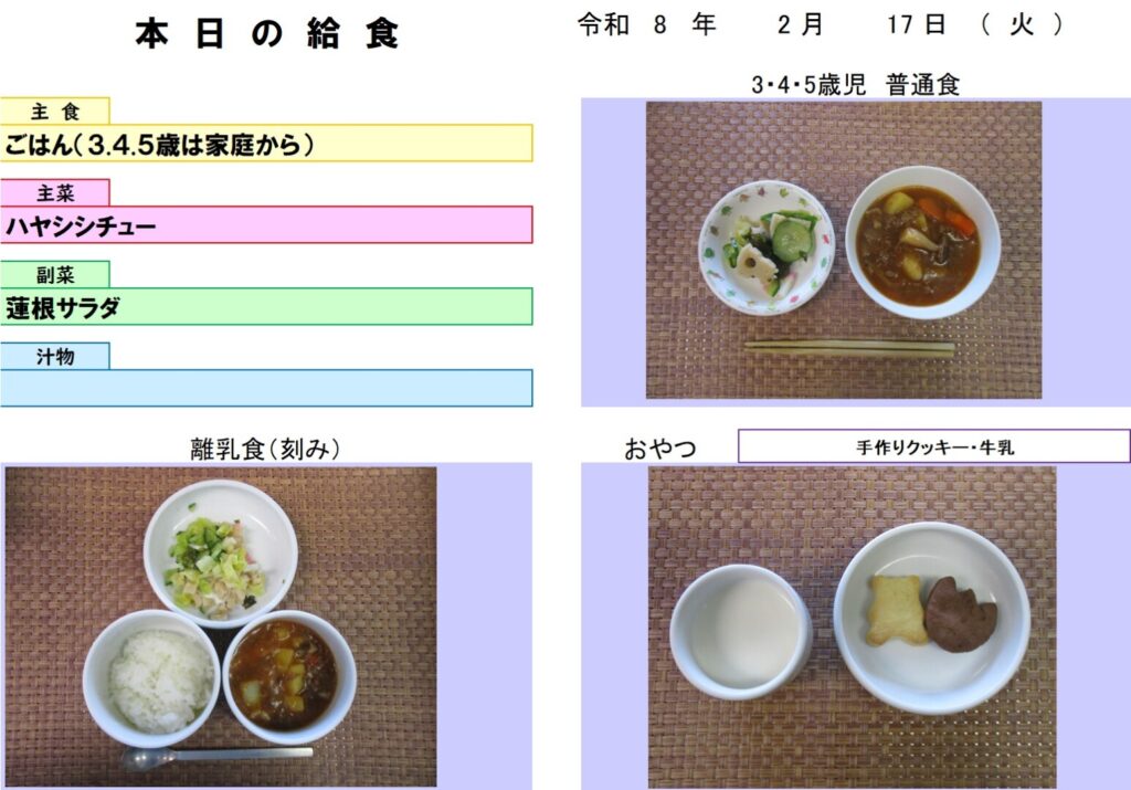 今日の給食(R8.2.17) - 玉名市岱明町 大野保育園