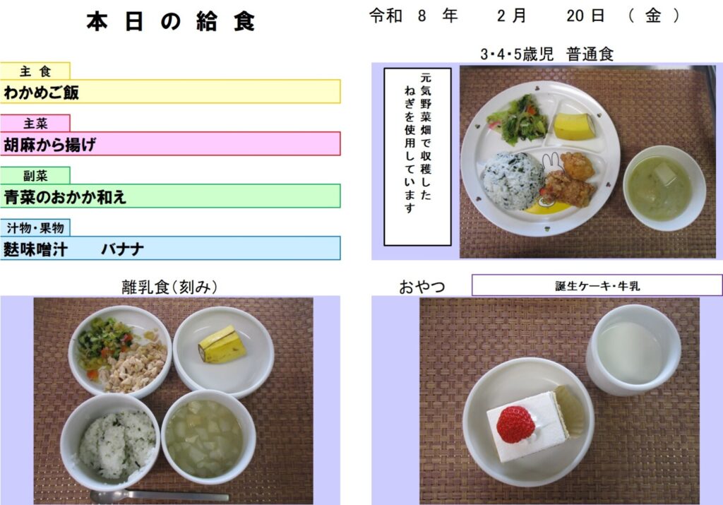 今日の給食 (R8.2.20) - 玉名市岱明町 大野保育園