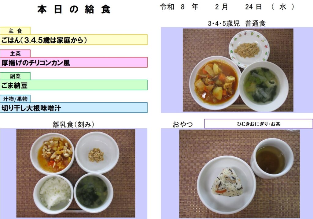 今日の給食 (R8.2.24) - 玉名市岱明町 大野保育園