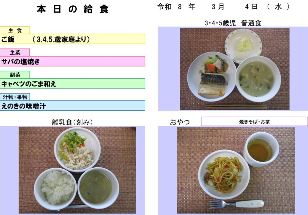 今日の給食 (R8.3.4) - 玉名市岱明町 大野保育園