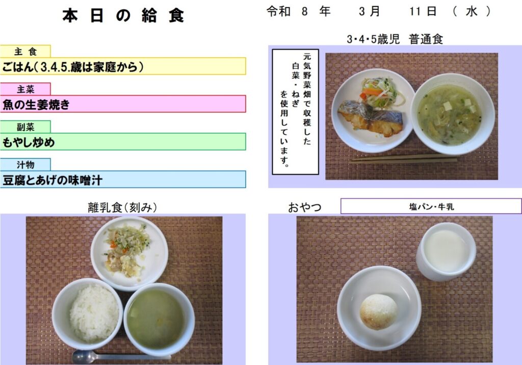 今日の給食(R8.3.11) - 玉名市岱明町 大野保育園