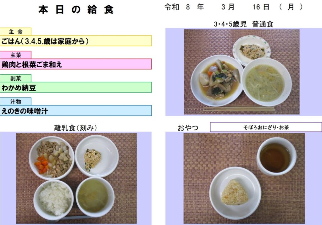 今日の給食(R8.3.16) - 玉名市岱明町 大野保育園