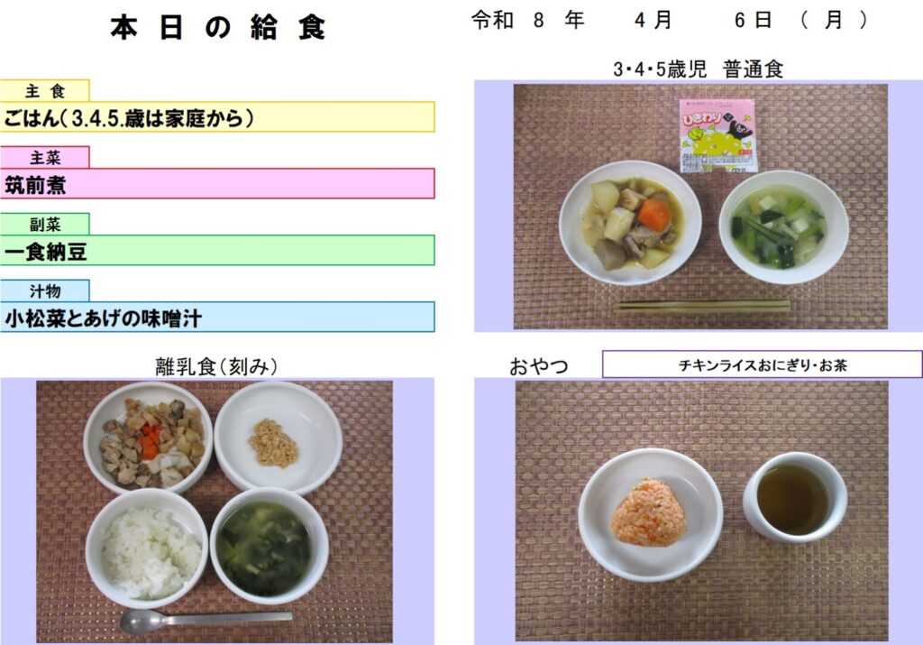 今日の給食(R8.4.6) - 玉名市岱明町 大野保育園