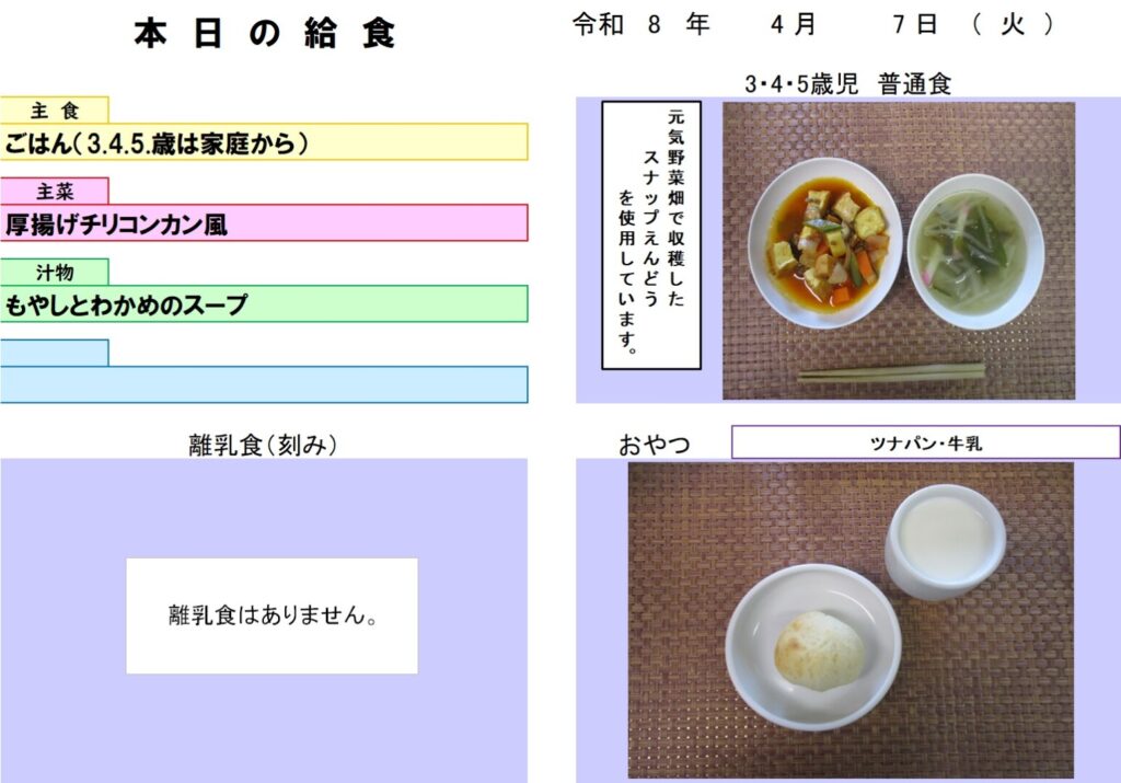 今日の給食(R8.4.7) - 玉名市岱明町 大野保育園