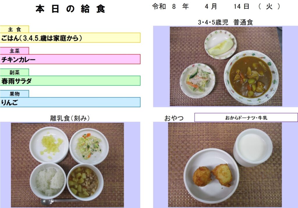 今日の給食 (R8.4.14) - 玉名市岱明町 大野保育園