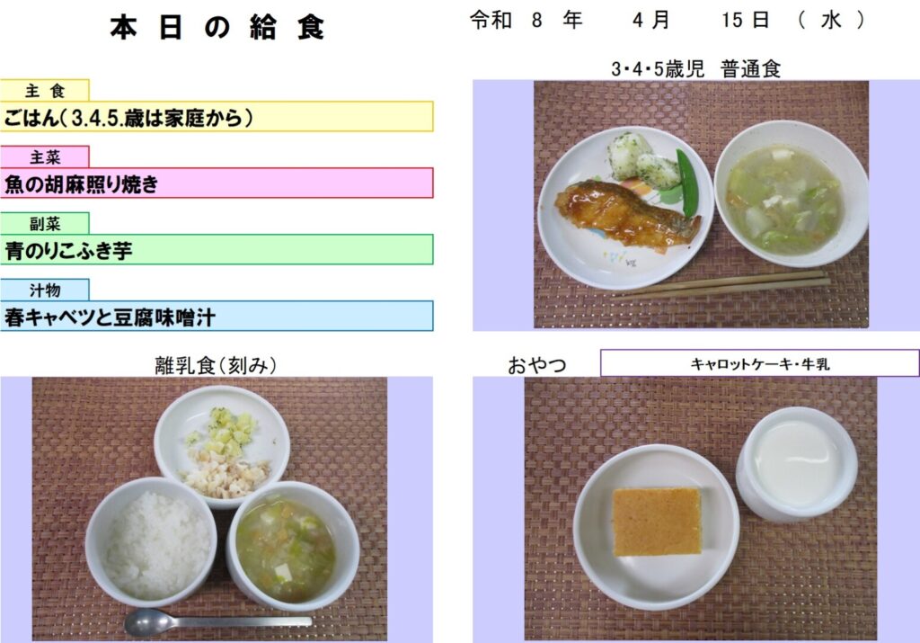 今日の給食 (R8.4.15) - 玉名市岱明町 大野保育園