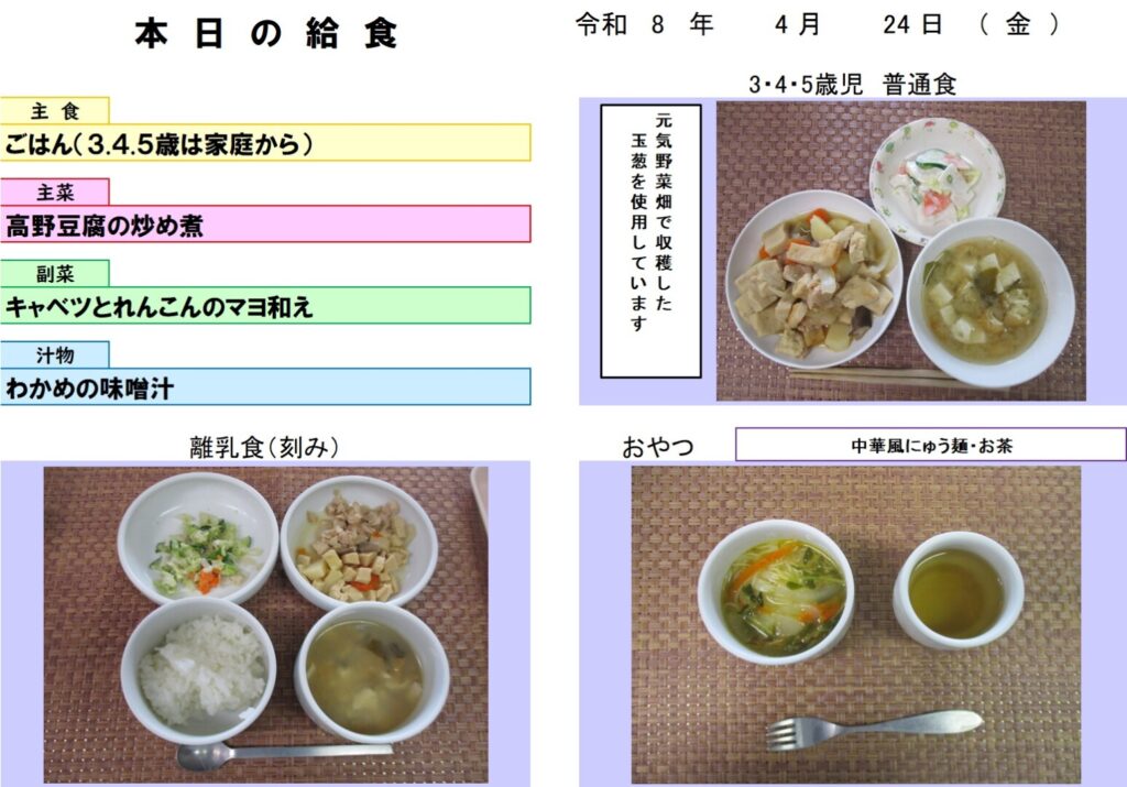 今日の給食(R8.4.24) - 玉名市岱明町 大野保育園